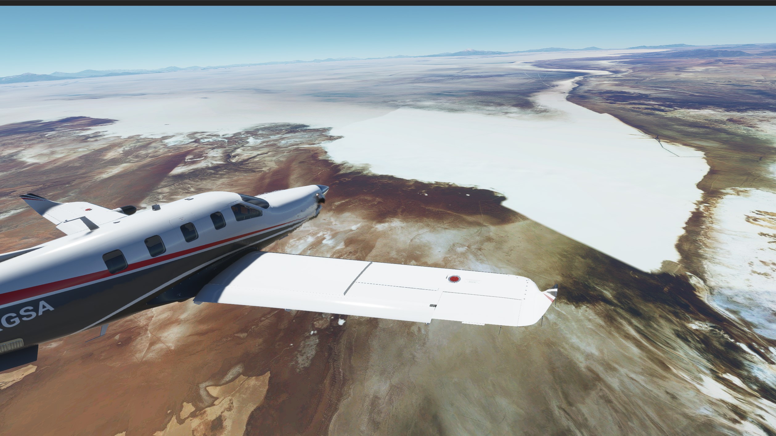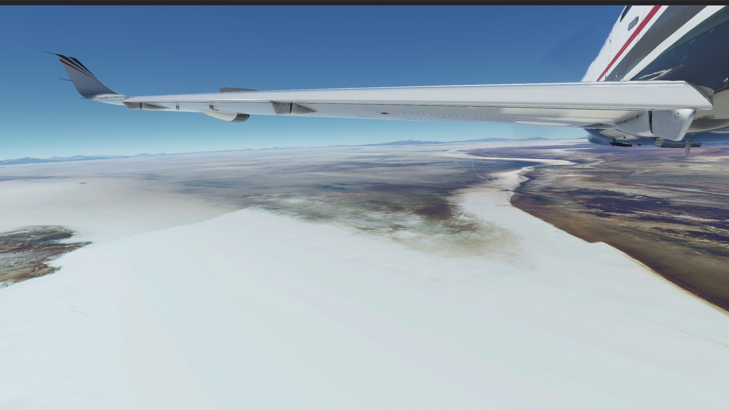 It’s a visual flight, so we’ll take a bit of a detour to the north and explore the salt flats: