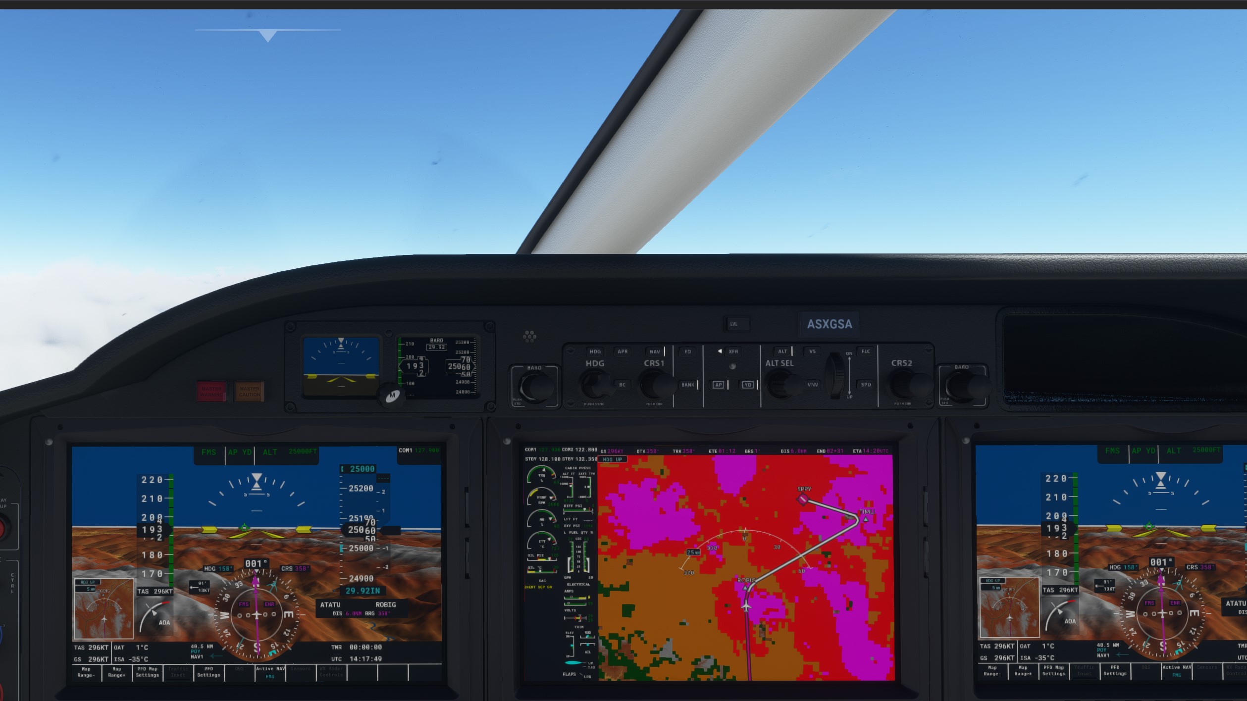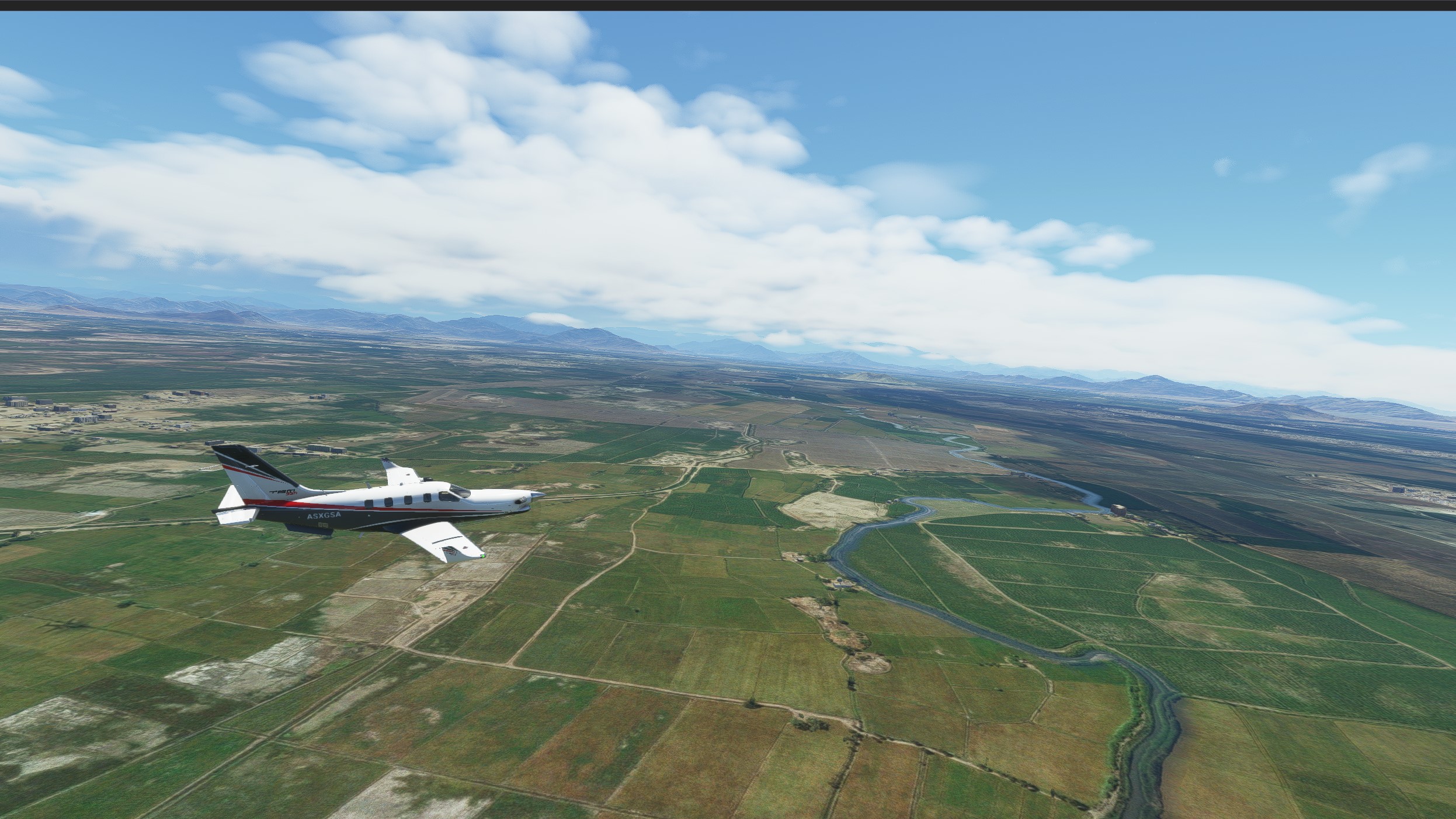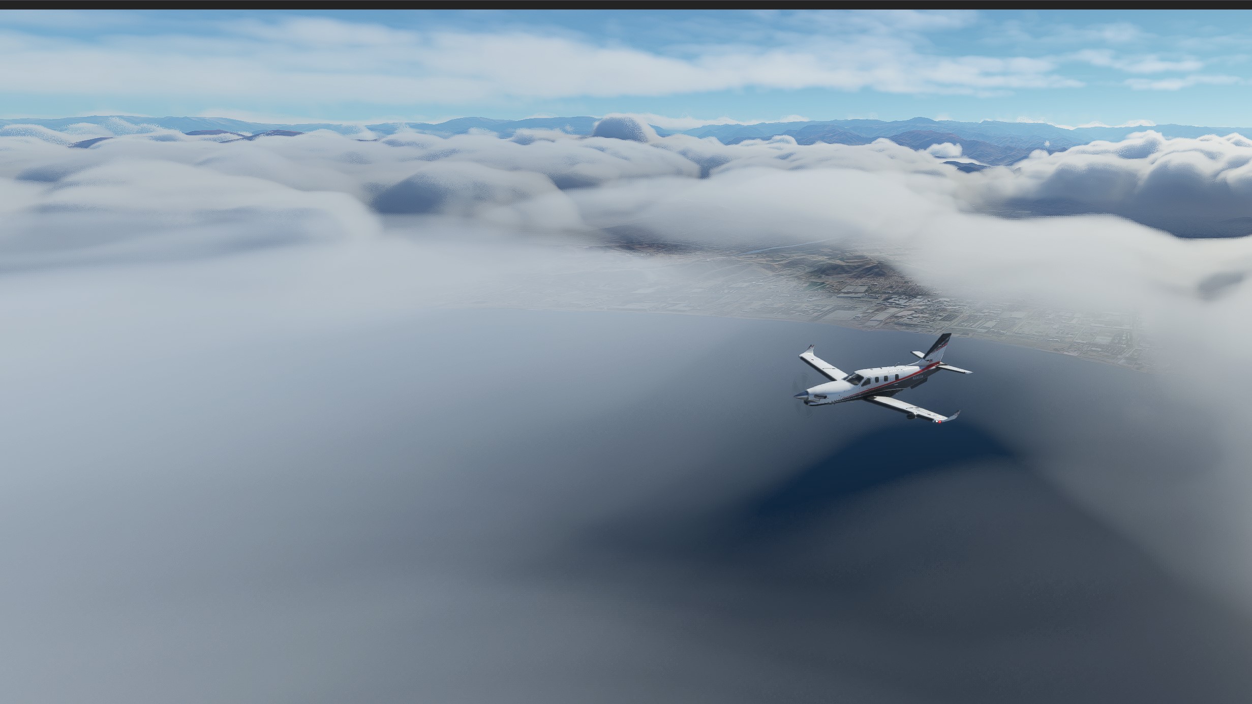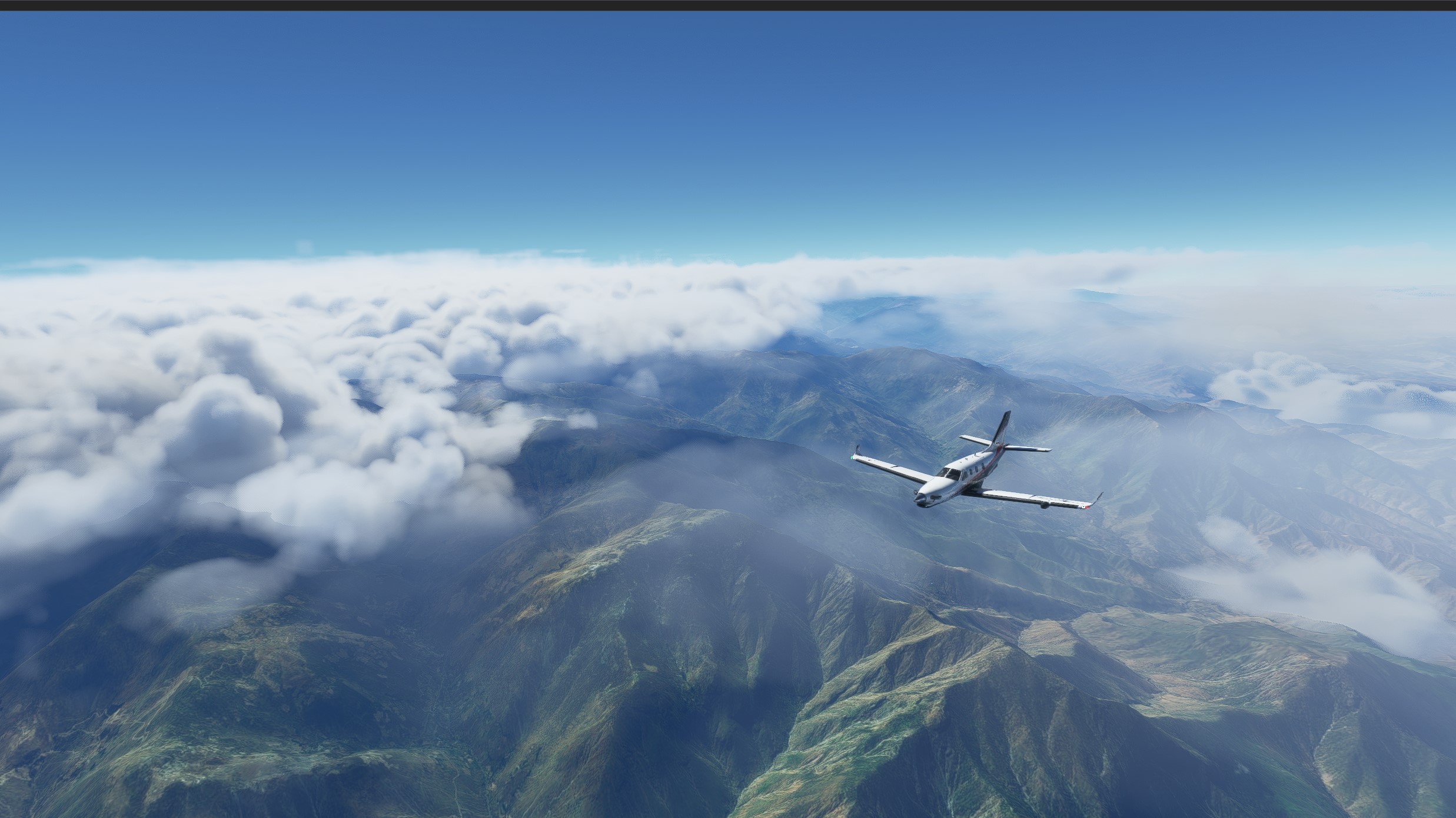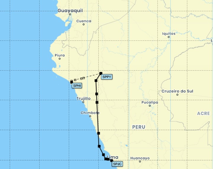 We will proceed to our alternate airport, Chiclayo, which is in the coast. We climb back up to 21000ft and proceed west to the coast. As we start leaving the mountains, the weather clears up nicely: