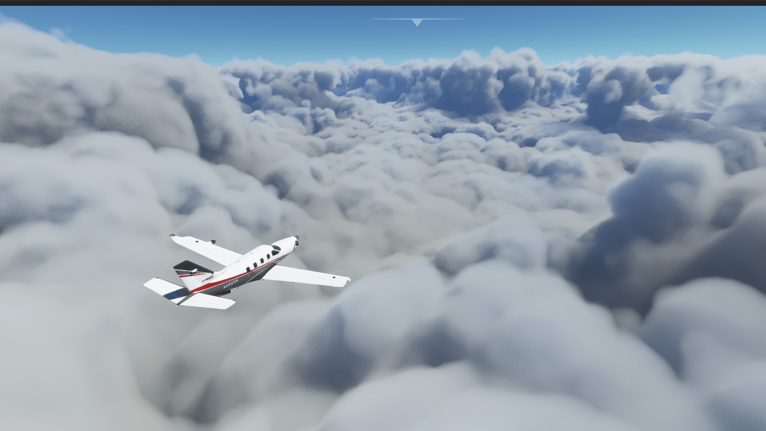 As we finish the instrumented arrival procedure, we arrive at the decision point. Here, we need to decide if we continue with the final approach or abort. We are currently at 1500ft above ground level, and 3.5nm away from the airfield, and we still dont see anything. It was clear that landing here would be impossible. The decision point is reached and, with not even the airport lights in sight, it’s time to abort the approach.