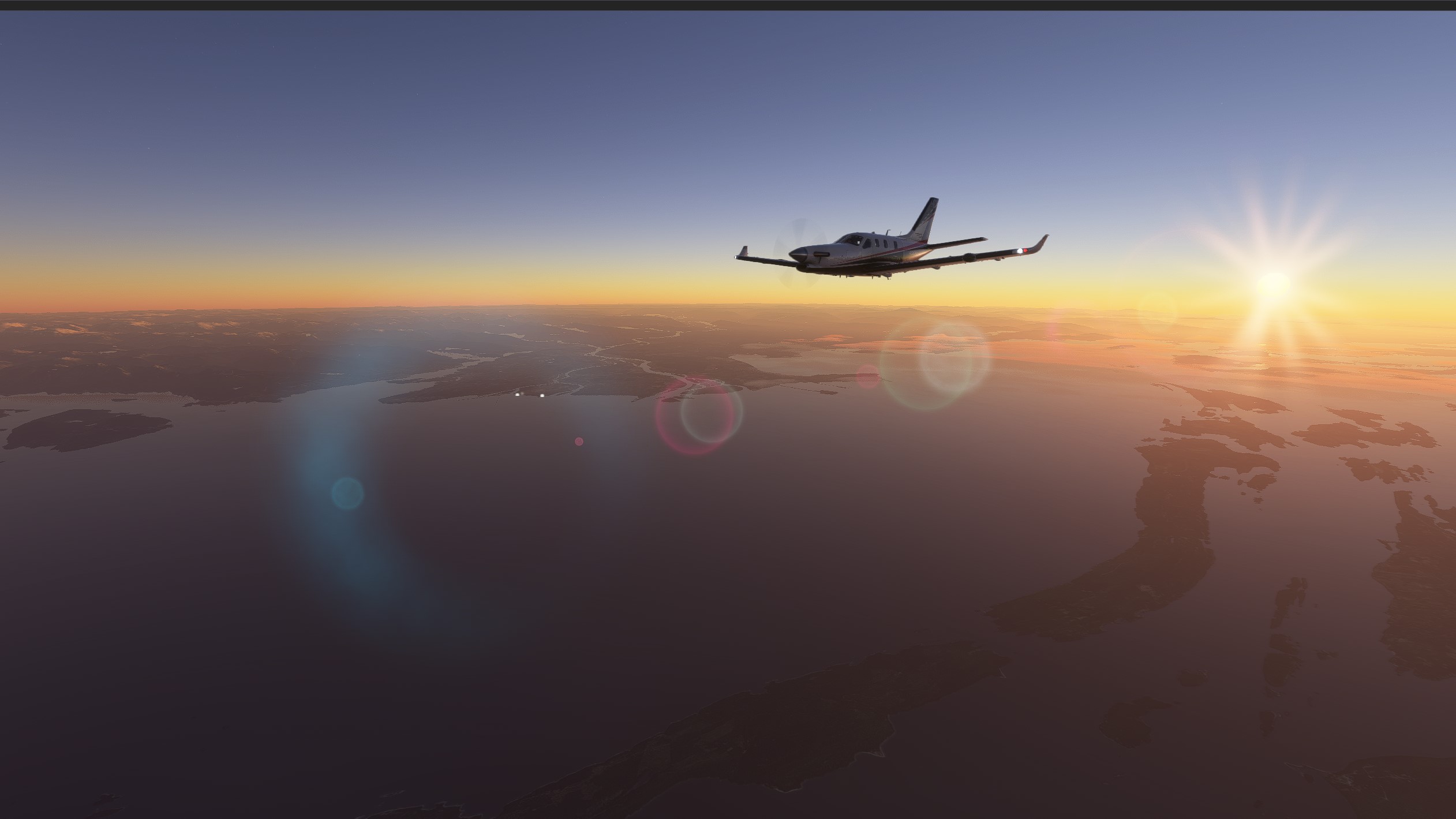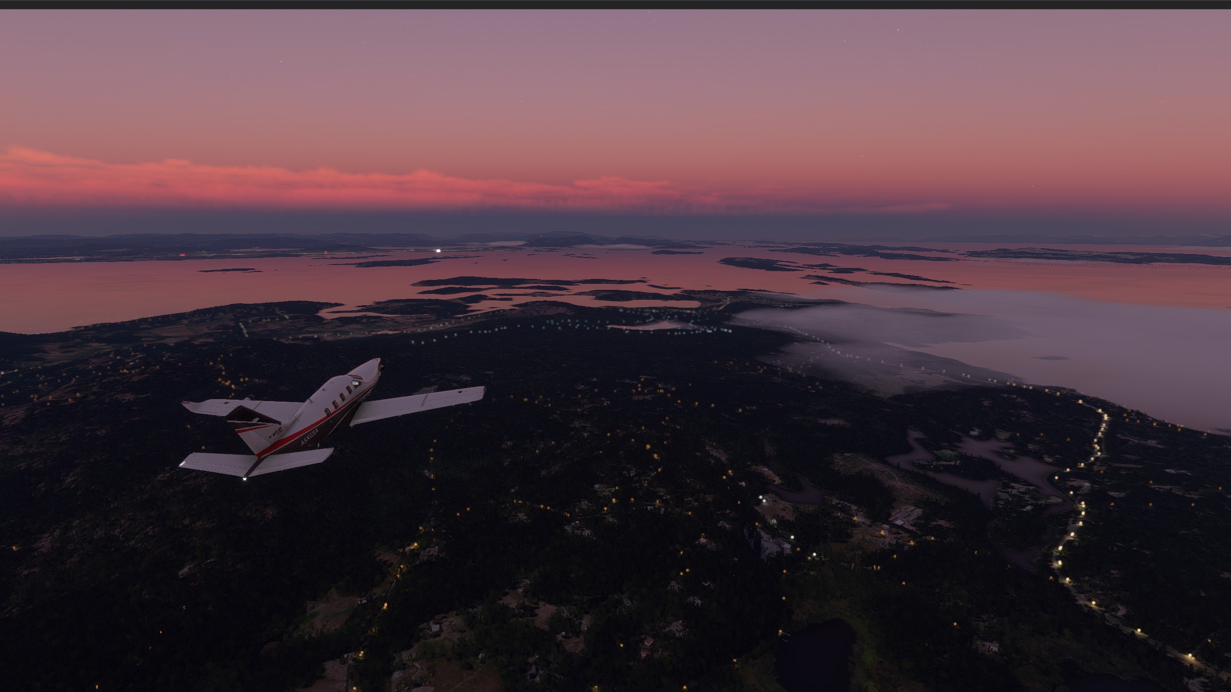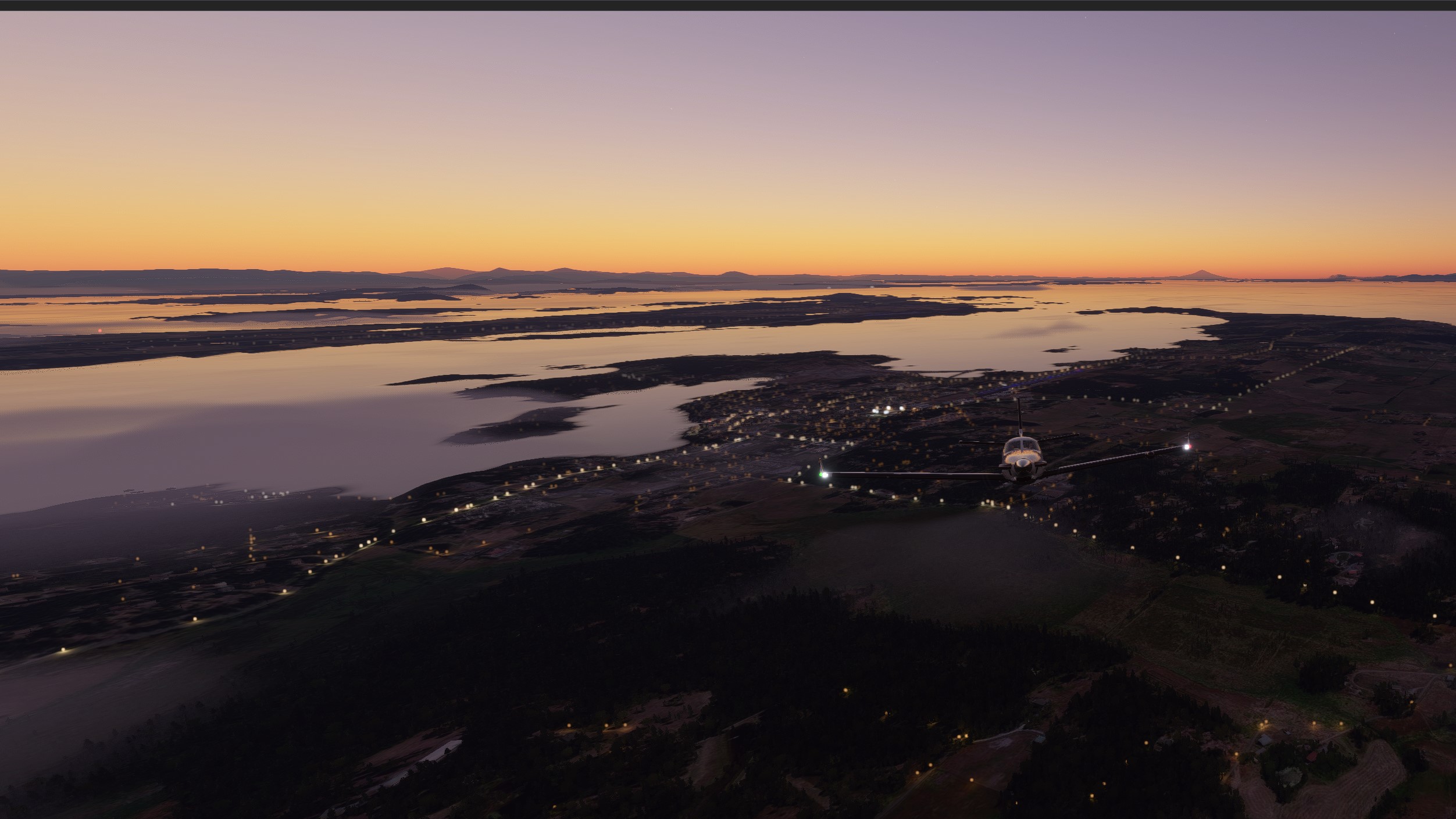 We depart the USA right at dawn, and get the see some nice views of the west coast during the early morning lights: