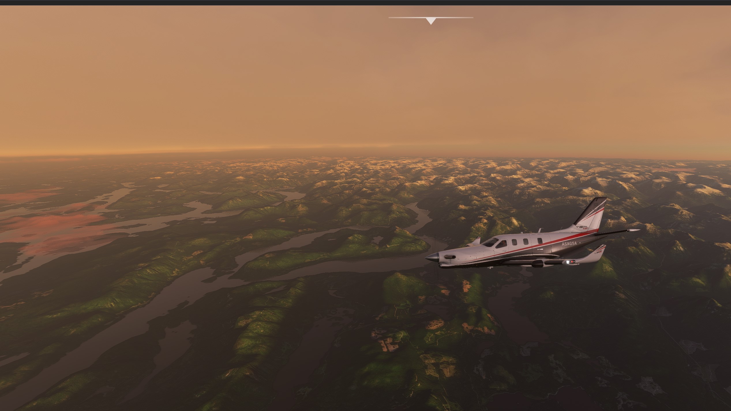Once at a cruising altitude of 25’000ft, the winds are very strong (over 50kts) and the turbulence quite hard. So I lower the altitude to 20’000 to see if the air calms down a bit there. Not much luck either.
