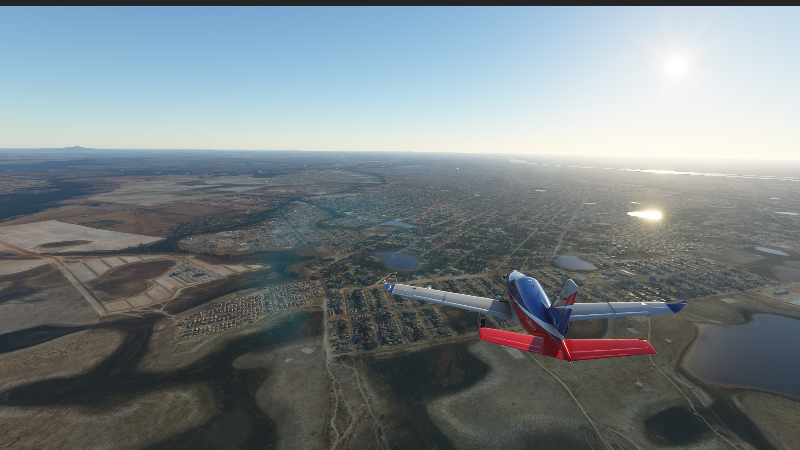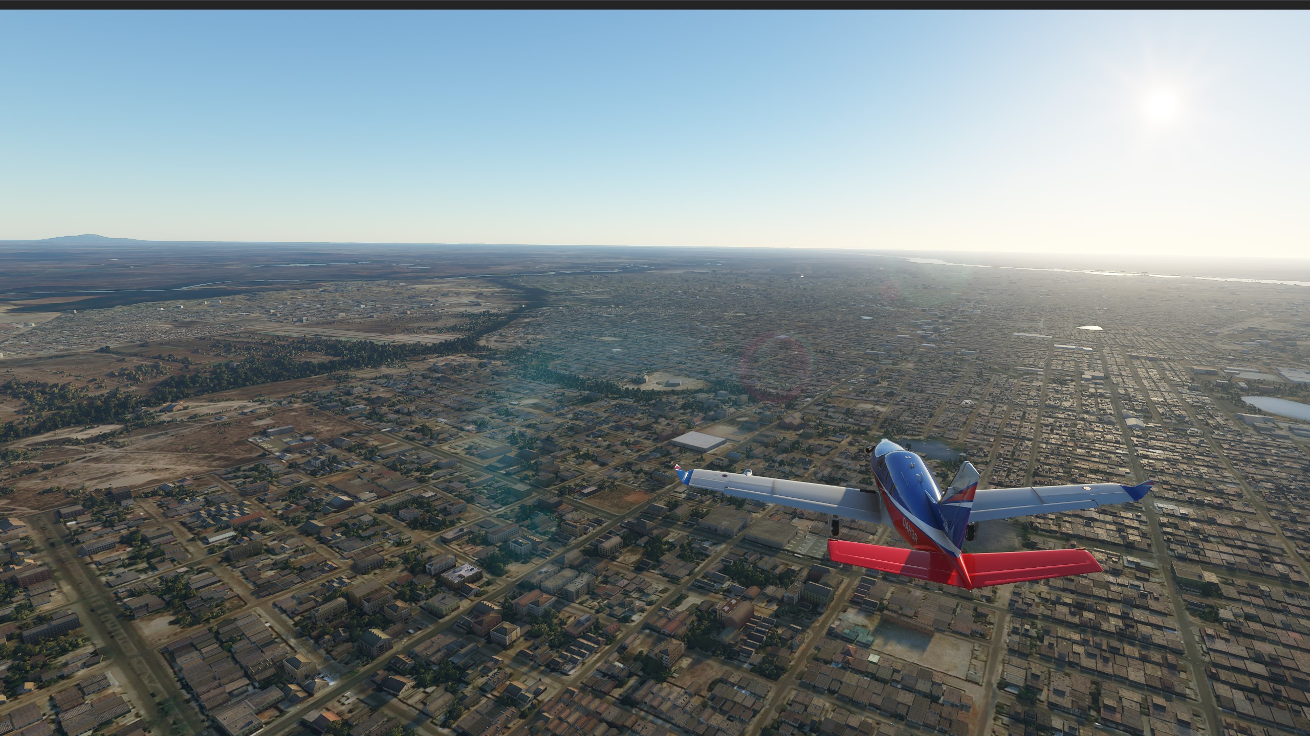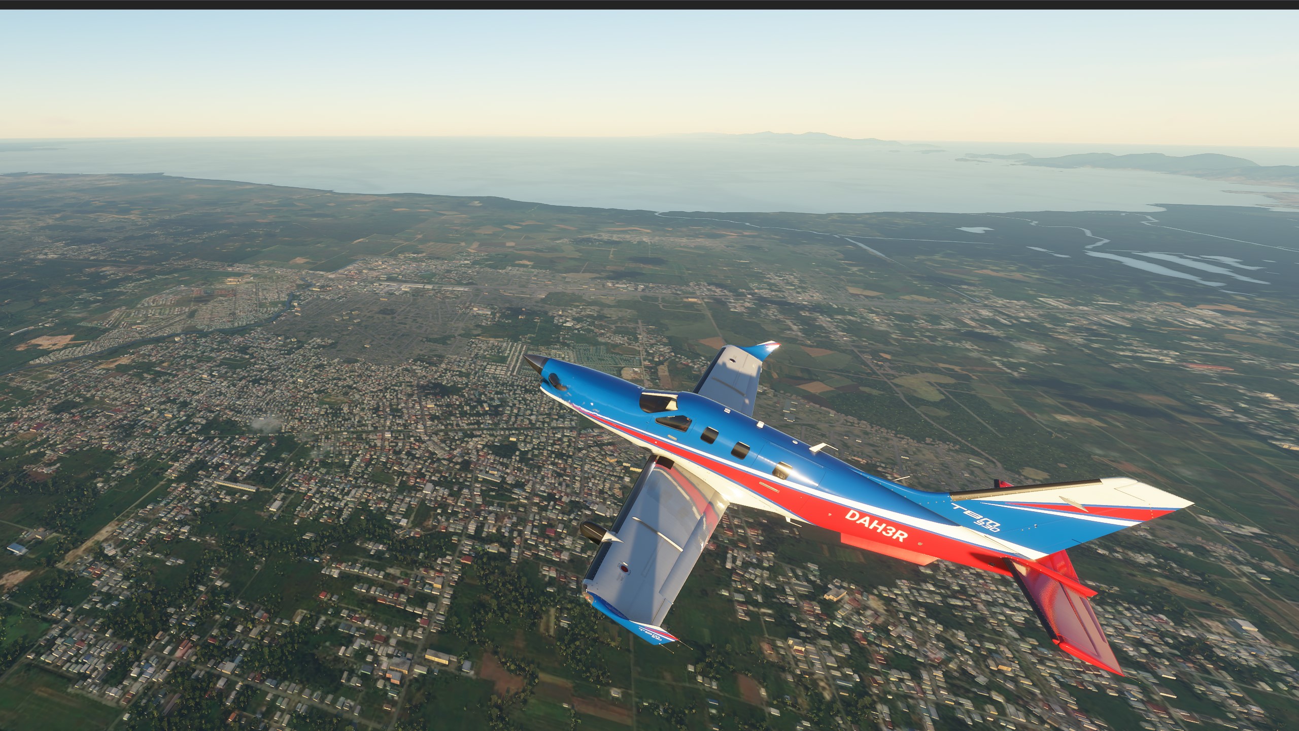 View of Port of Spain during the initial climb. Ok, that AOA (Angle of Attack) was kind of aggressive, but the TBM can take whatever you throw at it.