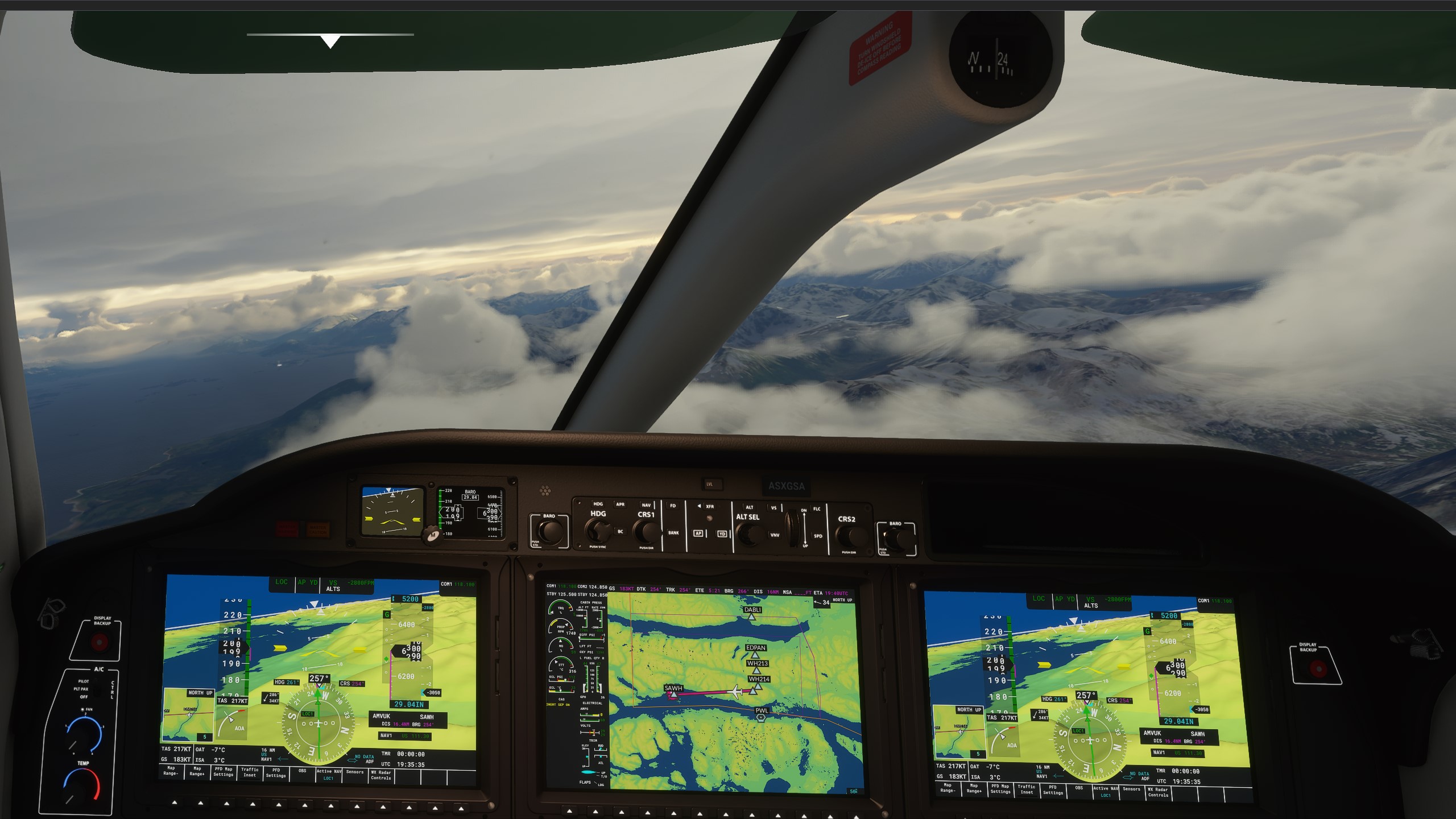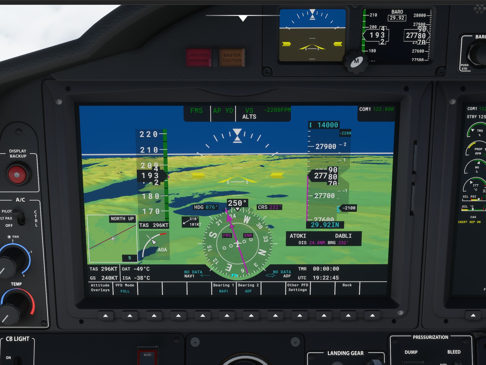 I have noticed that, the more south you go, the worse the weather tends to get. Don’t know if this is also true in real life, but if it is, it is something you definitively want to plan for. The clouds are heavier and higher, the high-altitude wind is crazy, and the winds at land are also no joke, especially if they force you to do a crosswind landing procedure. Just look at this screen, showing winds of 101kts at 27000ft: